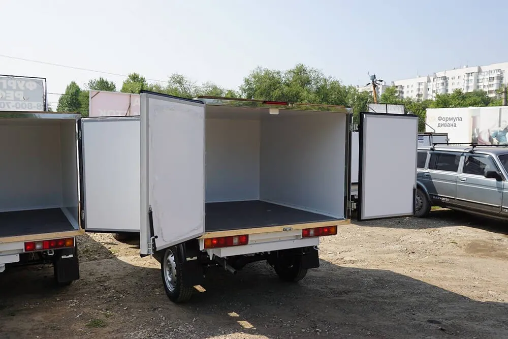 Описание для фургонаВнешняя обшивка – крашенная оцинкованная сталь, внутренняя обшивка - пищевая оцинкованная сталь, пол – рифлёный алюминий, портал - нержавеющая сталь. Двери - задние распашные. Запоры штанговые одинарные. Фургон выполнен под установку холодильного оборудования в Самаре.
