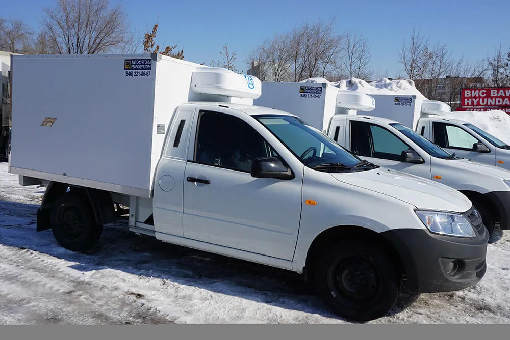 Монтируем холодильники марок «Элинж» (Россия), «Термо Кинг» (США), «Dongin Thermo» (Корея). Температурный режим от – 20 градусов до + 5 градусов, привод от двигателя автомобиля. Режимы: холод и холод/тепло.