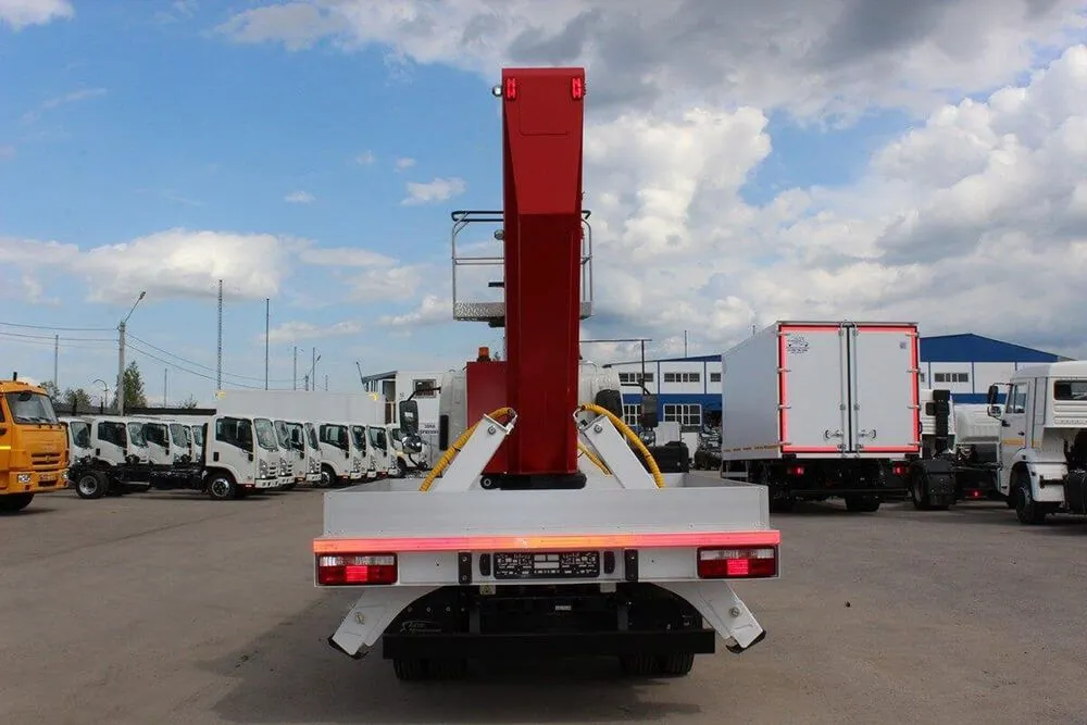 - Безопасность. В составе автовышки предусмотрен насос аварийного типа, который станет незаменимым помощником во время непредвиденных ситуаций. Стабилизация опор при выполнении работ осуществляется с помощью специальной системы безопасности. В комплектацию подъёмника также входит стабилизатор устойчивости, рулевая колонка и прочие компоненты. Предусмотрен ящик для инструментов. Конструкция автовышки исключает появление коррозии и повреждений механического характера.