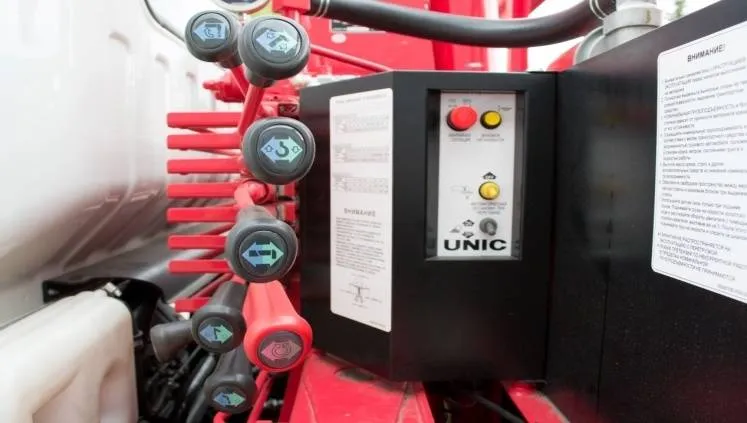 Система Юни-крюк, позволяет осуществлять закрепление крюка в транспортное положение под самой стрелой, что облегчает операцию приведения КМУ в транспортное положение.