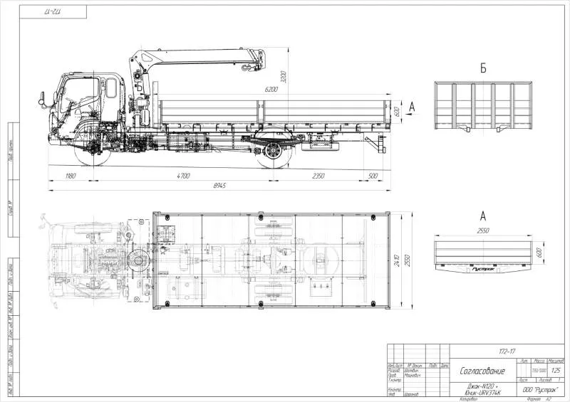 Кран-манипулятор автомобильный с модернизированной краноманипуляторной установкой UNIC 374 K (возможен монтаж других КМУ или другой модели серии 370) на базе шасси JAC N120 с алюминиевой бортовой платформой с габаритными размерами бортовой платформы – 6200х2550х600 мм.