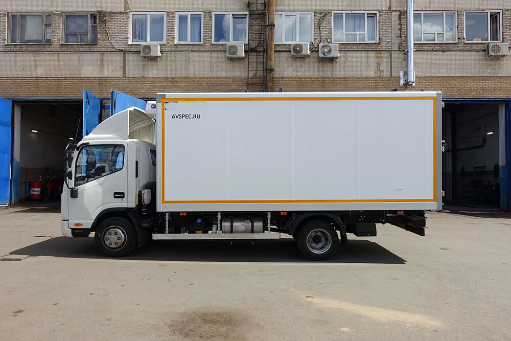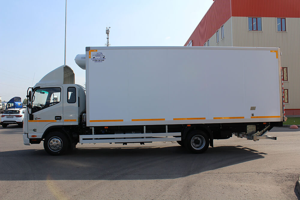 Рефрижератор JAC 80 имеет полную массу до 7,9 т. Является идеальной альтернативой другим грузовикам в рамках внутри и межгородских перевозок продуктов питания или любых других температурных грузов.