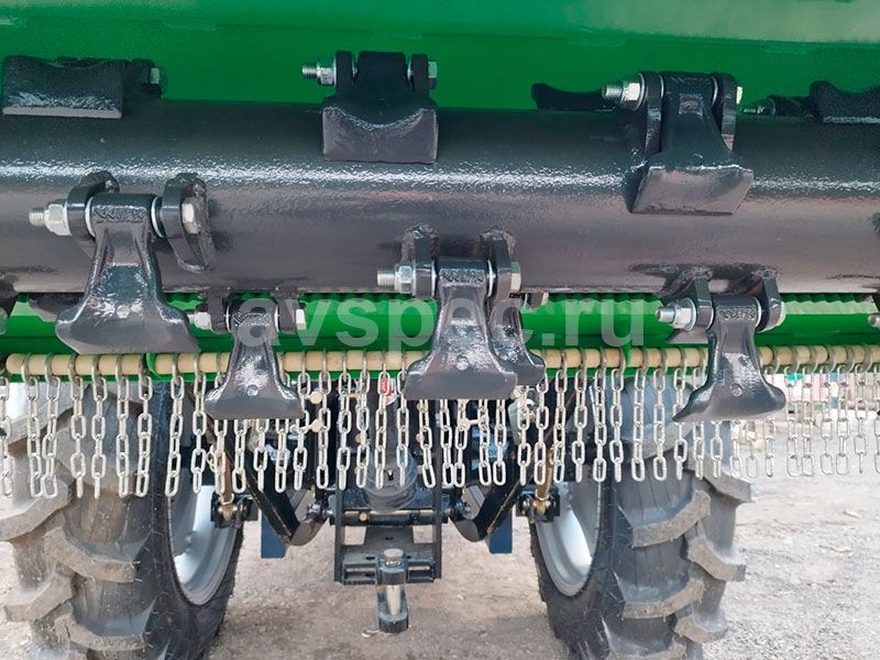 В передней части мульчера установлена штора, состоящая и ряда тяжёлых цепей, предотвращающих выбрасывание измельчаемого материала.