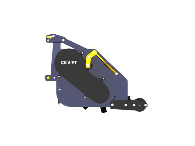 Основным рабочим органом мульчера SCQ-180 является вал с 24 шарнирно закрепленными на нём тяжелыми ножами Y образной формы. Привод вала от ВОМ трактора реализован при помощи кардана, конического редуктора и ременной передачи. Наличие в конструкции ременного узла позволяет защитить вал с ножами от поломки при наезде на камни и случайно попавшие на поле металлические предметы. Замена порвавшегося ремня обходится значительно дешевле ремонта механизма, и может быть выполнена на месте.