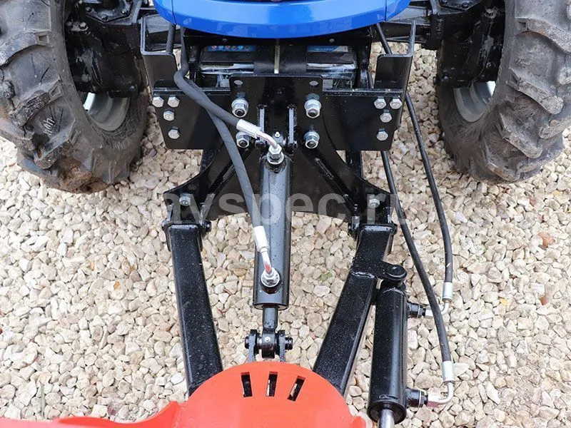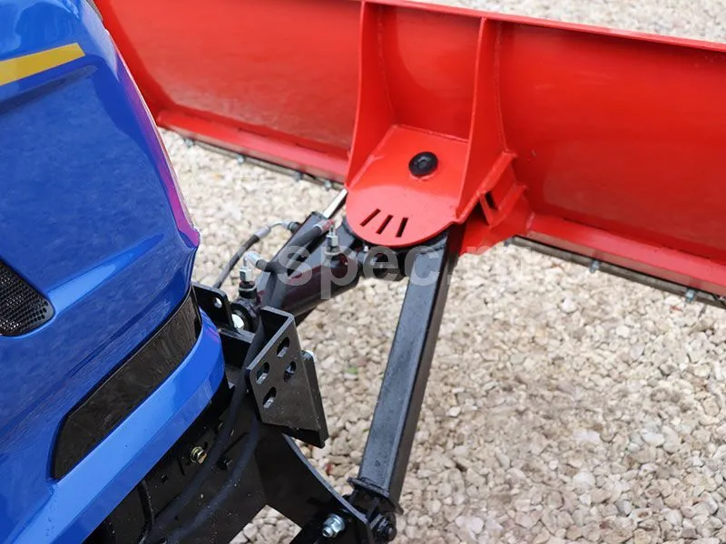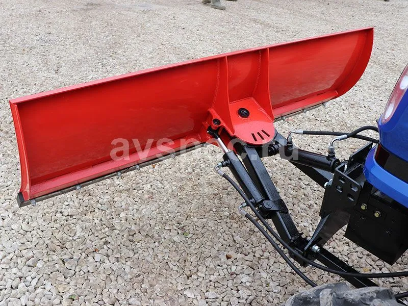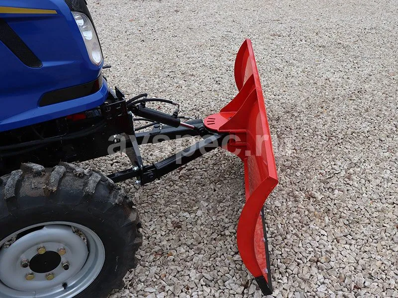 Ширина лопаты (отвала) составляет 1,75 метра, а высота - 750 мм. Угол поворота отвала составляет 30/30 градусов, что позволяет эффективно очищать проезжую часть от снега и мусора. Вес отвала - 130 кг. Он легко крепится на раму трактора спереди и может использоваться совместно с погрузчиком, не мешая его установке.