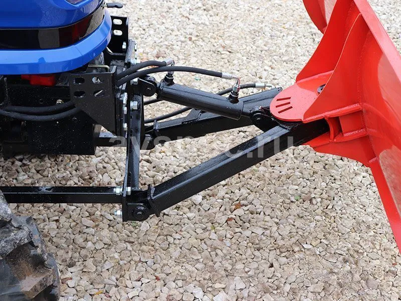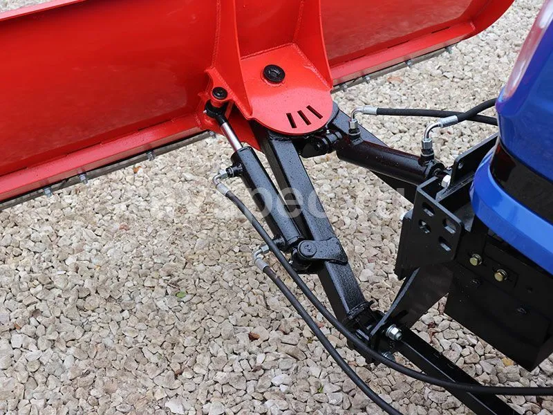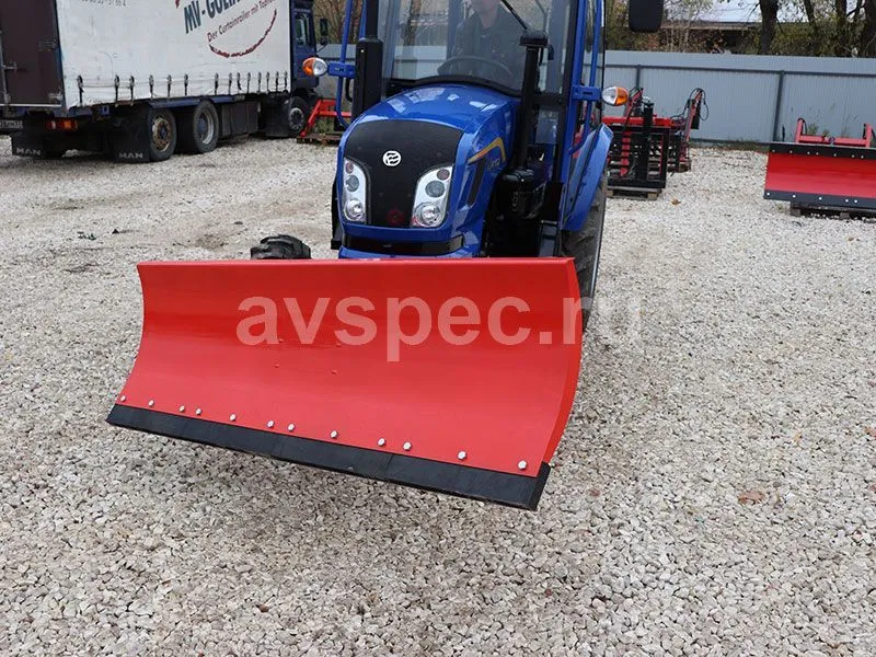 Ширина лопаты (отвала) составляет 1,75 метра, а высота - 750 мм. Угол поворота отвала составляет 30/30 градусов, что позволяет эффективно очищать проезжую часть от снега и мусора. Вес отвала - 130 кг. Он легко крепится на раму трактора спереди и может использоваться совместно с погрузчиком, не мешая его установке.