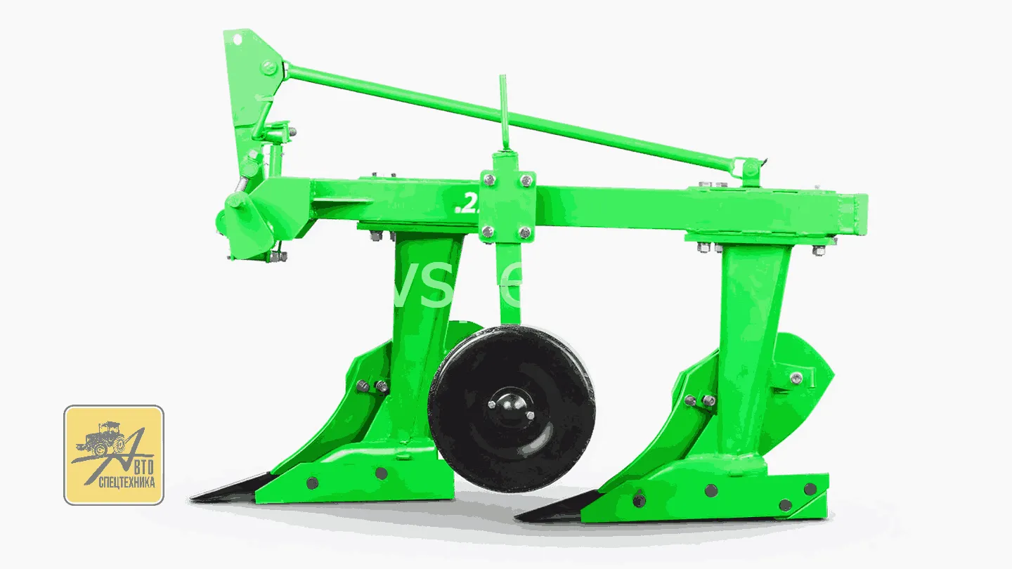 При производстве плуга В 2.25 в конструкцию включается 2 корпуса. Оборудование предназначено для работы на местности с уклоном не более 8,5°. Подразумевается взаимодействие с тракторами класса 0,6 и 1,4, которые оснащены стандартным колесным балластом.