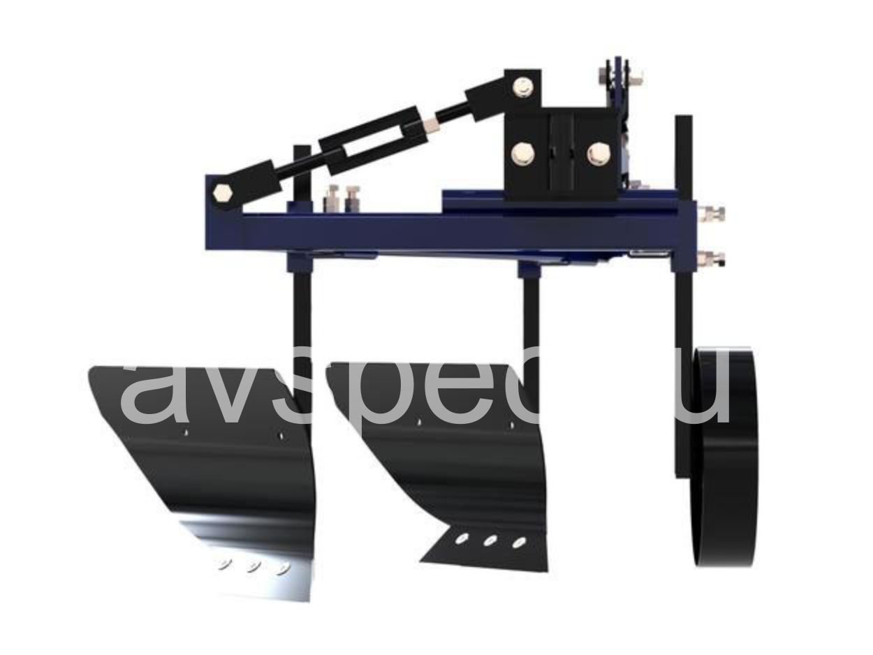 Регулировка угла наклона в продольном и поперечном направлении +- 20 градусов. Регулировка положения плуга относительно оси крепления 0-150 мм.