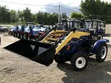 Погрузчик с ковшом для трактора Русич Т-224, Русич Т-244, Lovol TE-244, Lovol TE-354, Lovol TE-404 в комплекте с 2-х контурным распределителем. Покраска погрузчика производится порошковой краской.