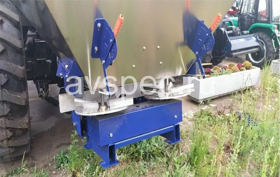 Сверхмощный двухдисковый разбрасыватель 2FX-1000 с объемом бака 1000 литров используется для внесения минеральных удобрений в почву.