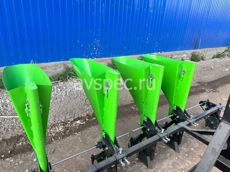 Для обеспечения стабильной работы на неровной почве применена двовальная система механизма дозирования с разделенным приводом. Шаг посадки в ряду: 110 мм, 125 мм, 140 мм, регулируется изменением передаточного числа на цепном редукторе. Для компенсации длины цепи использован натяжитель. Сошник и заделки регулируемые, глубина посадки – 60-80 мм. Ширина междурядий регулируется в пределах 200–330 мм. Ширина пути – 2220 мм.