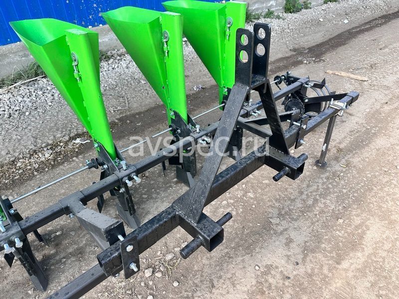 Для обеспечения стабильной работы на неровной почве применена двовальная система механизма дозирования с разделенным приводом. Шаг посадки в ряду: 110 мм, 125 мм, 140 мм, регулируется изменением передаточного числа на цепном редукторе. Для компенсации длины цепи использован натяжитель. Сошник и заделки регулируемые, глубина посадки – 60-80 мм. Ширина междурядий регулируется в пределах 200–330 мм. Ширина пути – 2220 мм.
