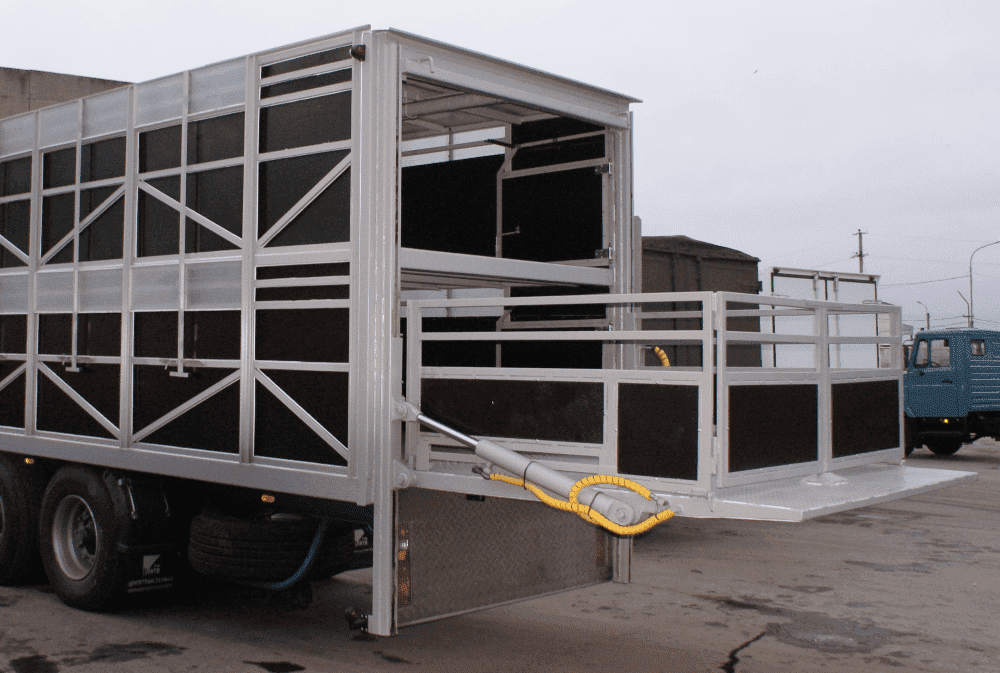 Загрузка животных осуществляется специальным гидробортом или наклонным трапом с перилами и фанерой (в закрытом положении сложенными), привод производство Италия.