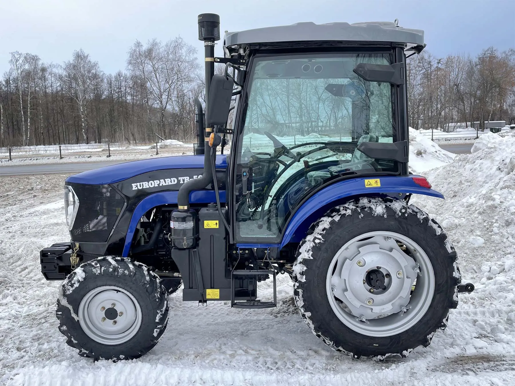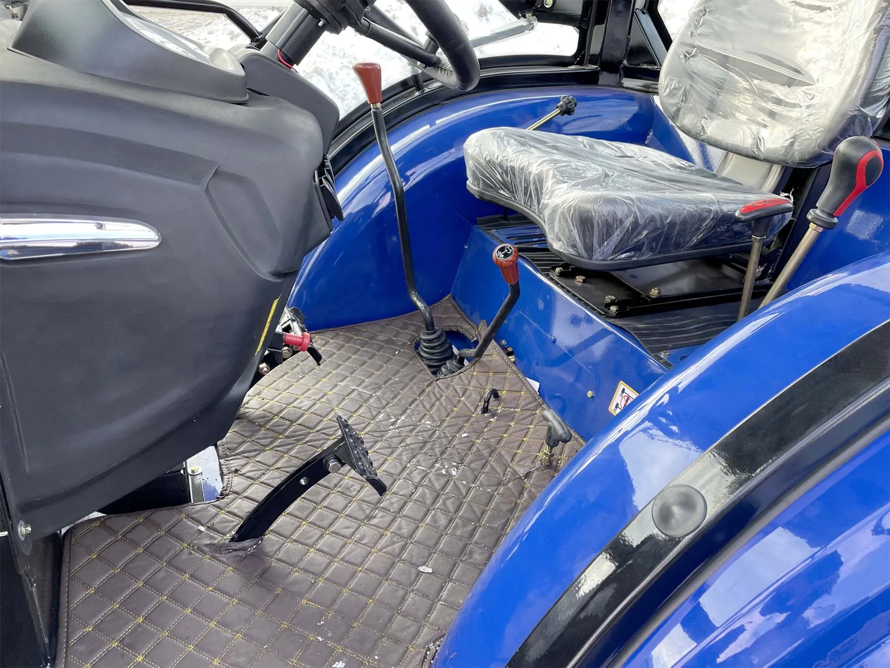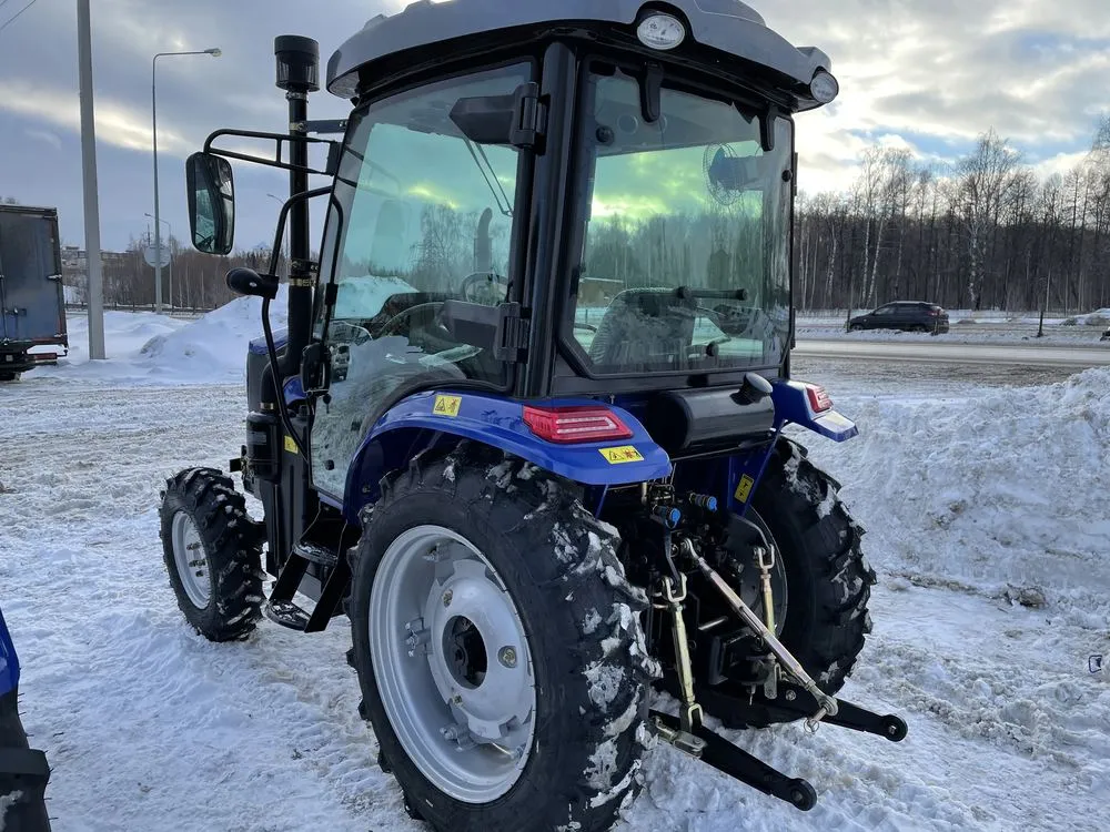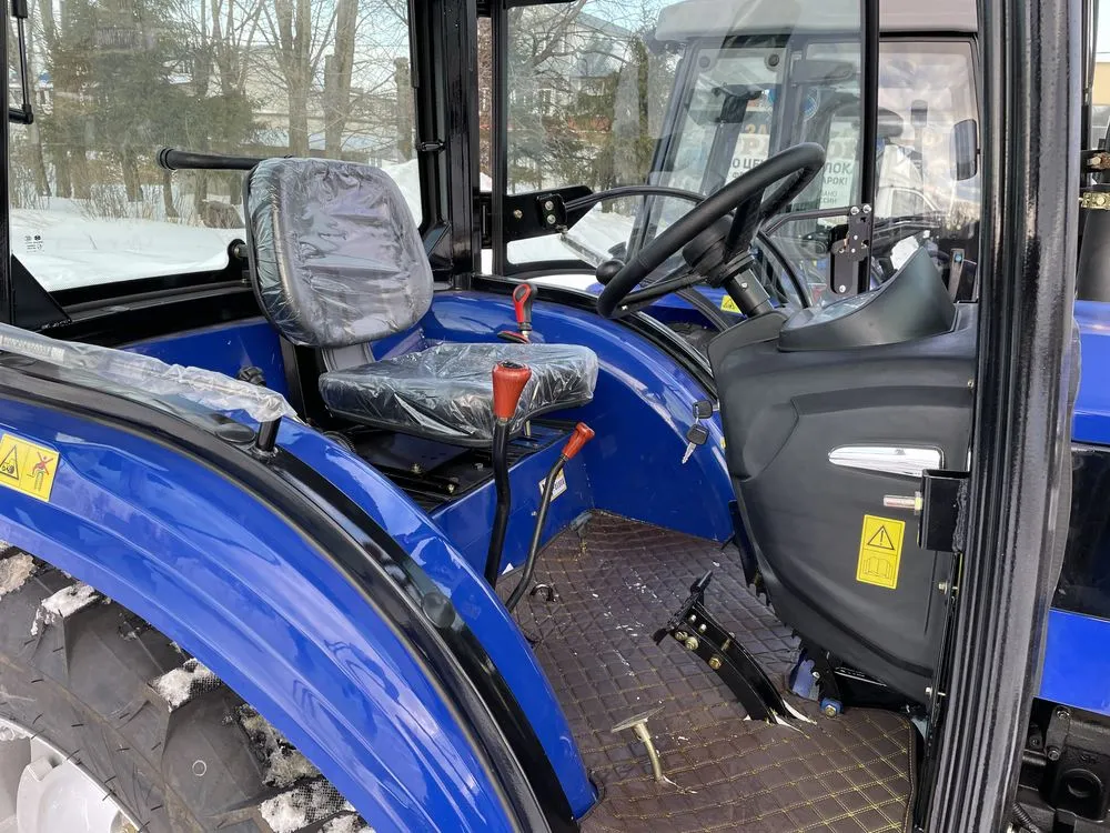 Установленная на тракторе кабина соответствует требованиям сертификации OECD и отличается современным европейским дизайном. Панорамное остекление обеспечивает водителю удобный обзор, а наличие отопителя ‒ комфортные условия работы в холодную погоду.