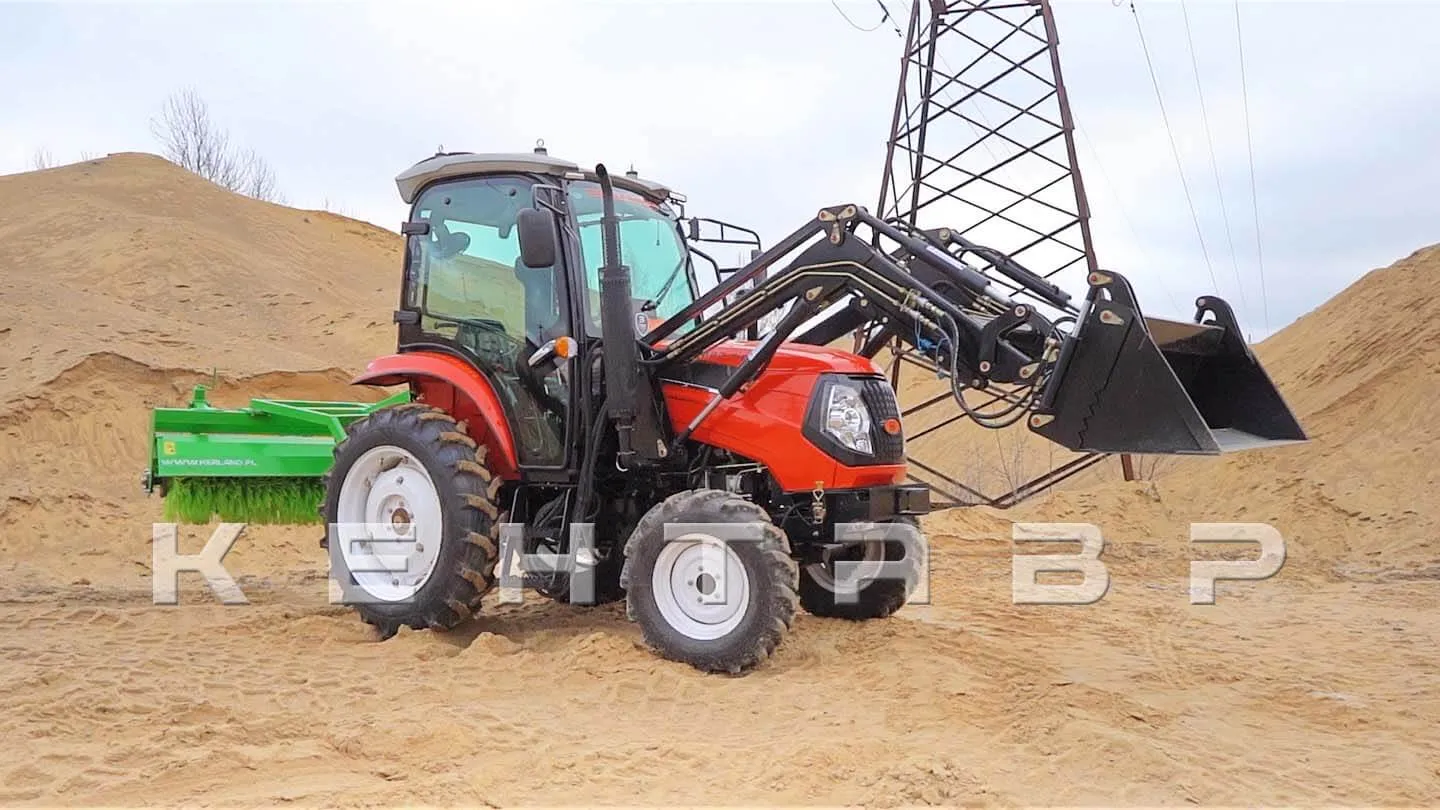 - Система навески оборудования с двумя гидроцилиндрами значительно расширяет эксплуатационные возможности трактора. К примеру, позволяет работать с тяжелыми самосвальными прицепами.