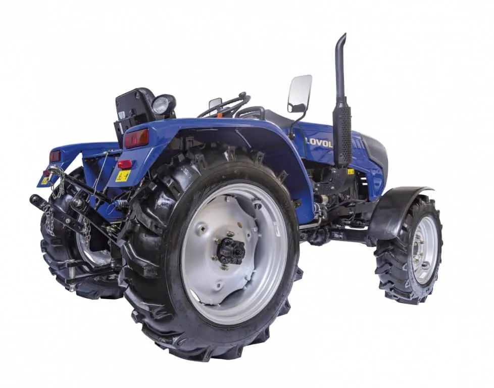 Для плавного переключения передач в проверенную временем механическую коробку Lovol Foton добавлены синхронизаторы. Усилитель рулевого управления полностью работает на гидравлике. Сцепное устройство трактора имеет как механический узел, так и трехточечную электрическую розетку, соответствующую евростандарту. В наличии блокировка дифференциала заднего моста. Это предотвращает пробуксовку трактора. Двигатель имеет 4 цилиндра, принудительное водяное охлаждение, масляный насос. Запускается с помощью электростартера. Комбинированная приборная панель содержит датчики давления и температуры масла, уровень топлива, вольтметр, тахометр.