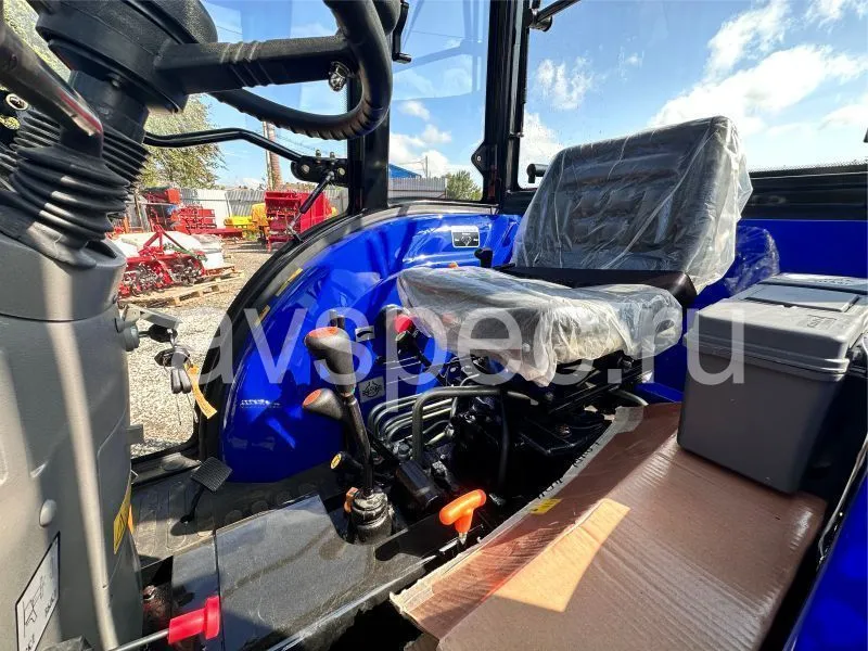 Капот имеет обтекаемый и современный вид. Приборная панель отражает уровень топлива, температуру охлаждающей жидкости, настройку системы климат-контроля, присутствуют порты для зарядки телефона, вольтметр и прикуриватель. Экологический класс трактора - ЕВРО-4. Выдается гарантия на технику от компании Lovol на 24 месяцев.