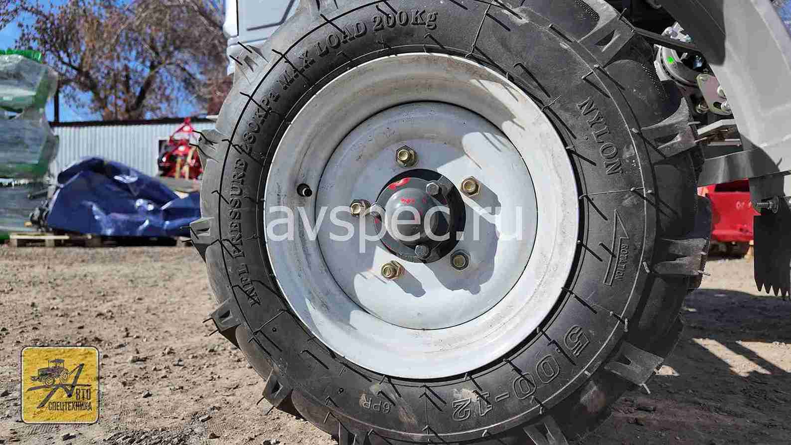 Колесная формула 2х4 обеспечивает отличную проходимость. Регулируемая колея (1300-1500 мм) — маневренность даже на тесных участках. Передние колеса 5.00-12, задние 6.50-16. Сцепление с грунтом превосходное.