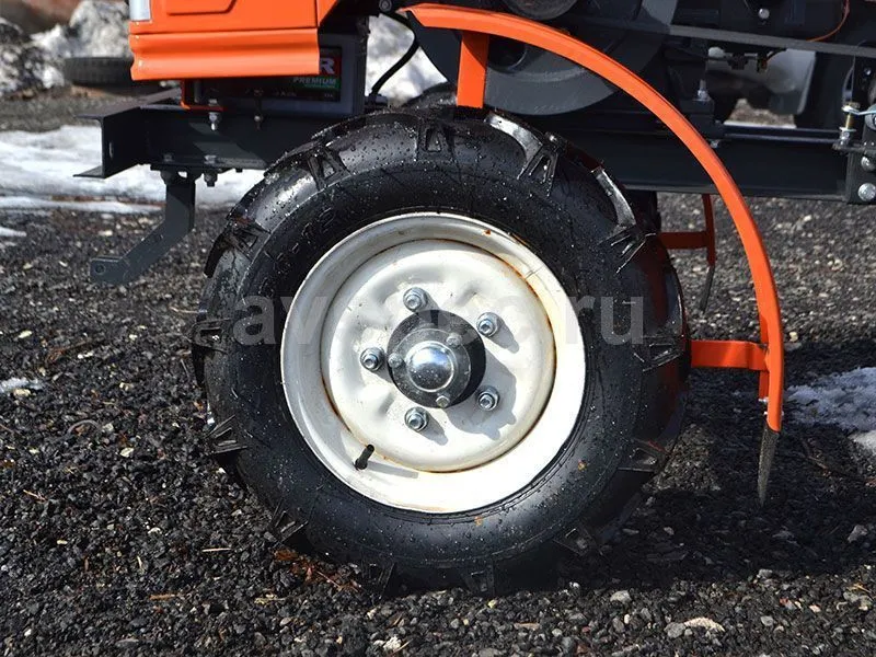 Вариативность запуска машины – в комплектацию входит и электрический стартер, и декомпрессионный клапан, который поможет запустить технику с помощью кривого ключа;