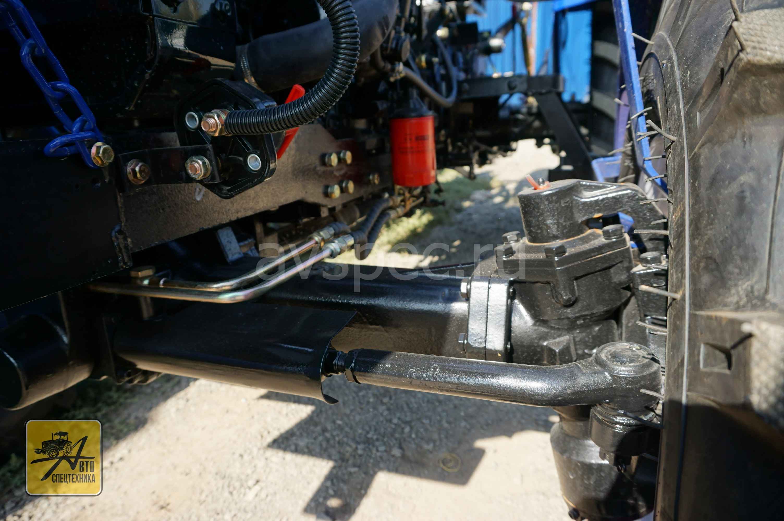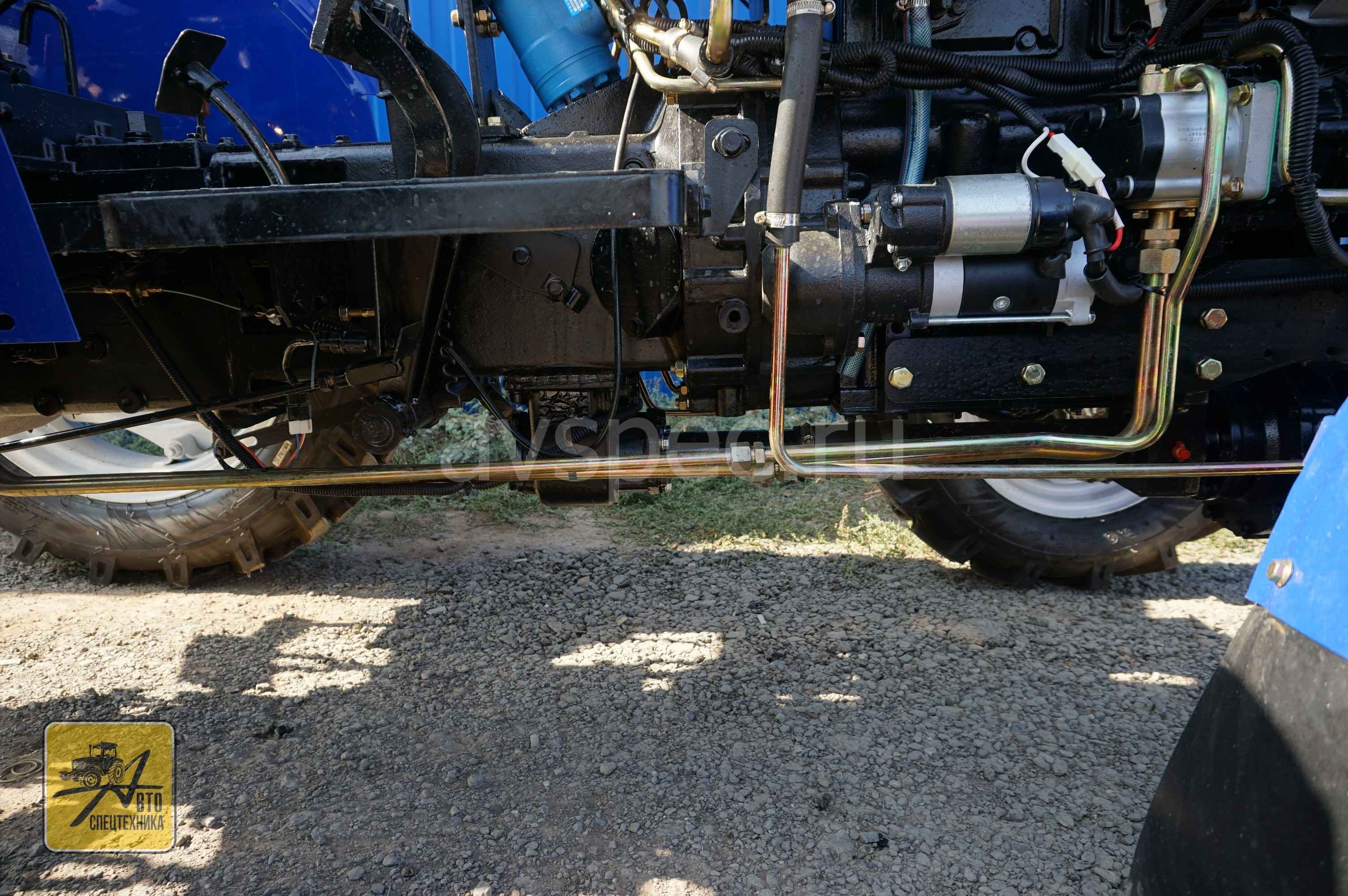 В отличие от других схожих моделей со схемой (3+1) × 2, здесь установлена механическая КПП (4F + 1R) × 2. Делитель ряда позволяет точно подобрать скорость под любую задачу. Такая трансмиссия особенно полезна при пахоте тяжёлых почв, буксировке прицепов, вытаскивании застрявшей техники, корчевании пней. Трактор уверенно двигается в городе, без труда форсирует весеннюю распутицу. По отзывам владельцев, переключение передач мягкое, бесшумное, что повышает комфорт при длительной работе.