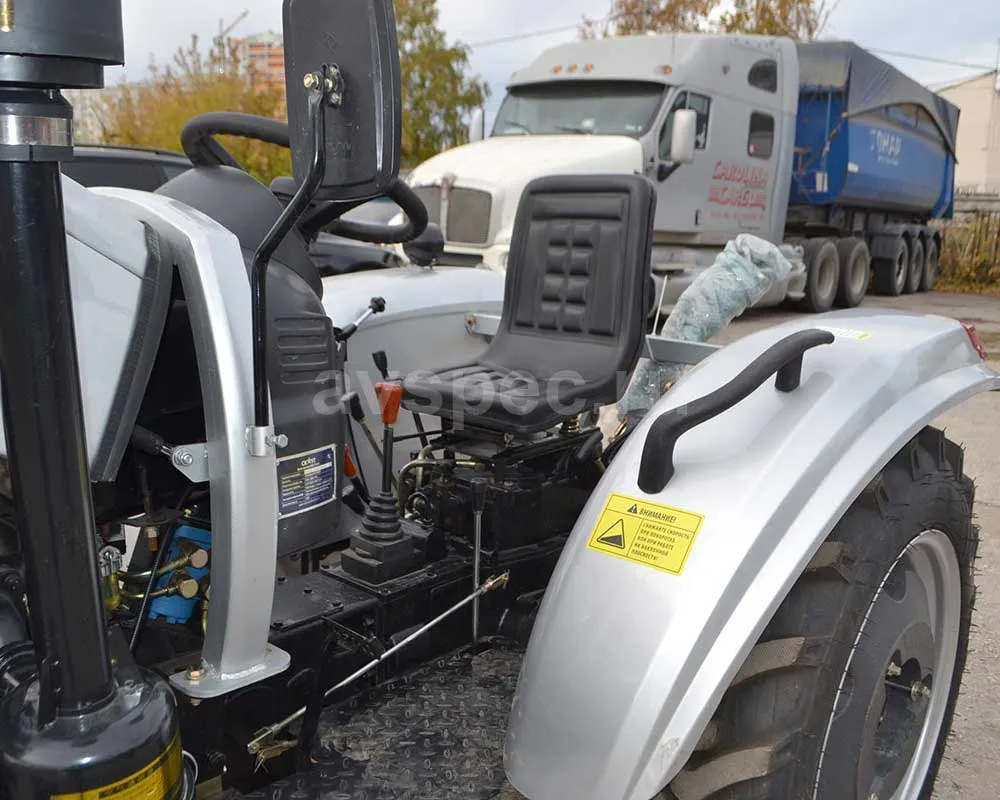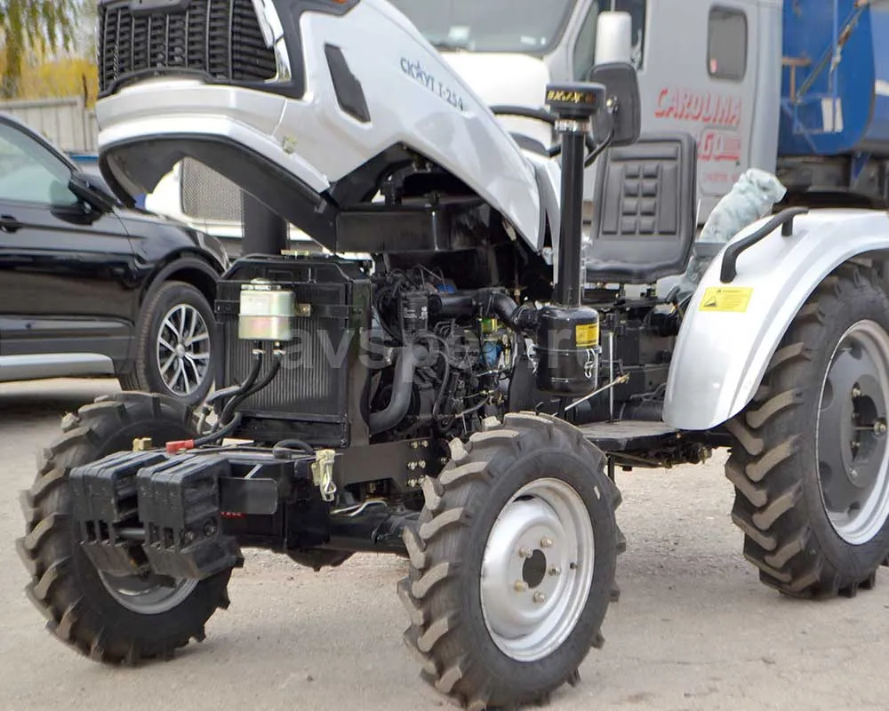 Достаточно мощный 24-сильный трехцилиндровый дизельный двигатель, коробка передач 8+2, совершенная гидравлика и трехточечная система навески грузоподъемностью 480 кг гарантируют высокую эффективность работы трактора СКАУТ Т-254 со всеми видами навесного оборудования и на почвах любого качества. Не менее важно, что за счет полного привода 4*4, широкой колесной базы и возможности блокировки дифференциала данная модель мини-трактора отличается высокой агротехнической проходимостью.