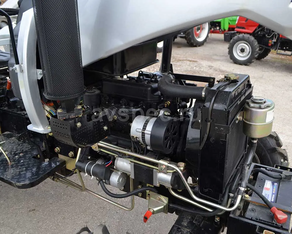- Двигатель: трехцилиндровый 4-хтактный дизель 385 (мощность 24 л. с.). Одна из самых удачных качественных моделей двигателей, также устанавливается на трактора Dongfeng и Lovol