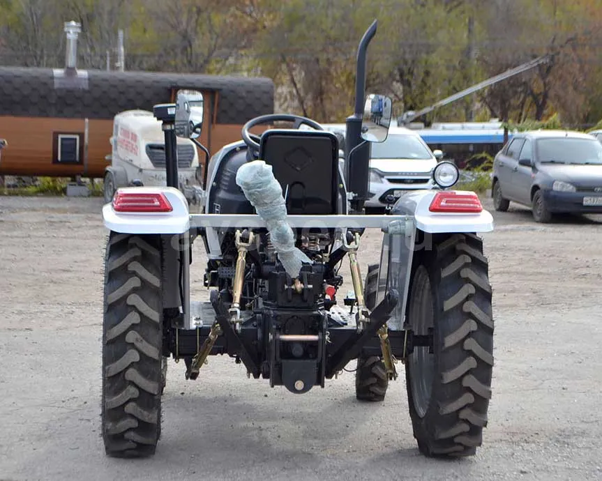 - Выполнен на большей, чем большинство 24 сильных тракторов, базе, вес 1 250 кг. Вы можете использовать более широкие почвофрезы и тяжелое навесное оборудование. Большие колёса: размер задних колес 9,50’’-24’’, передних - 6,00-16.’’